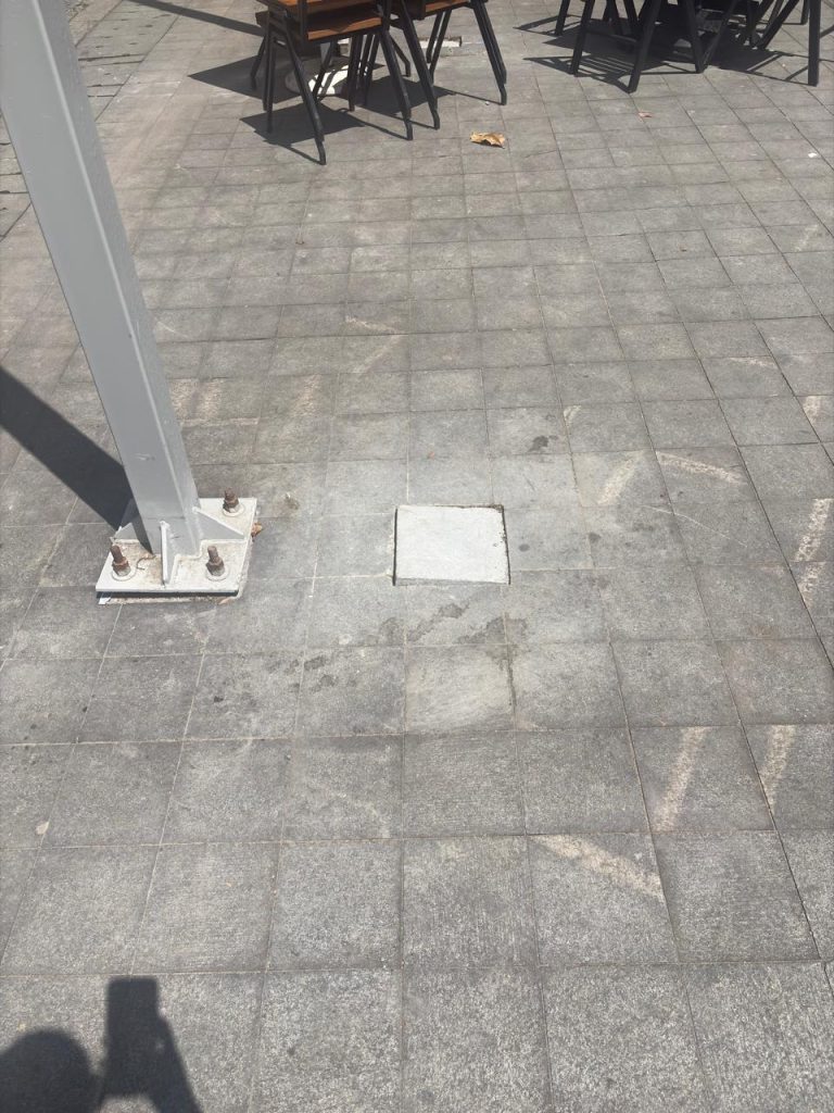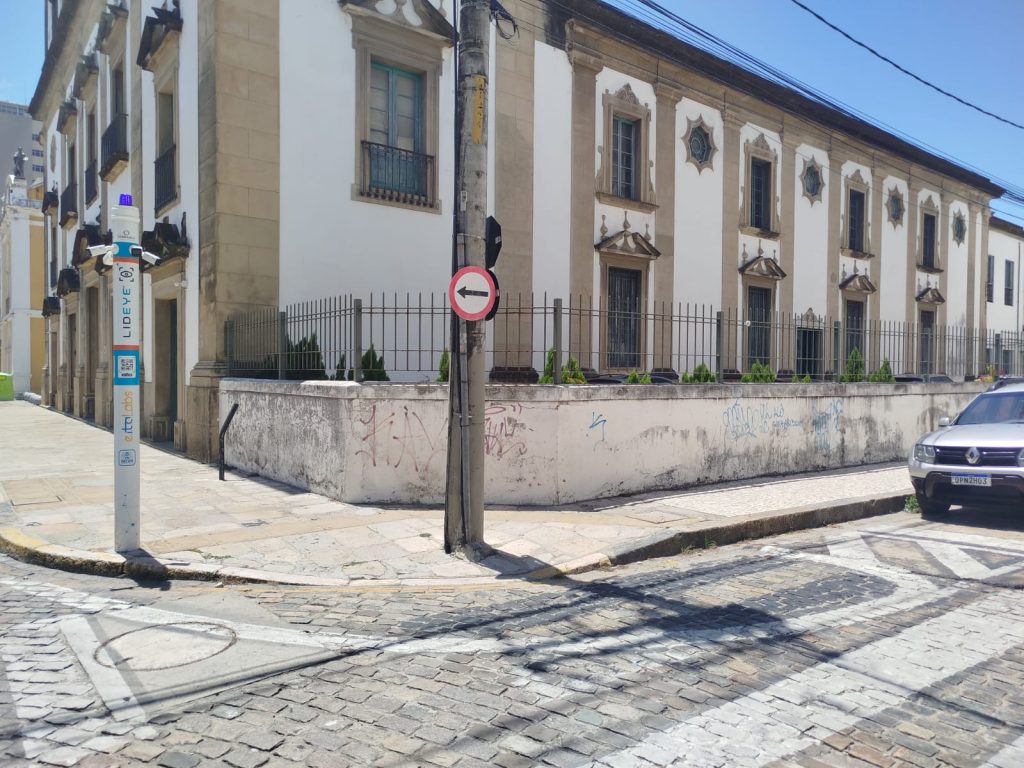 Foram executados serviços de pintura dos alegretes metálicos na Rua do Bom Jesus, bem como o escoramento na Praça do Arsenal, com o objetivo de promover a padronização visual em tons neutros.